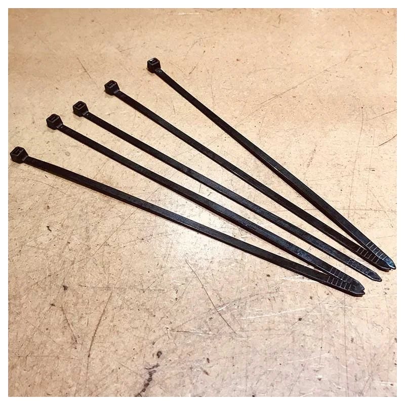 Lot de x5 colliers de serrage type rizlan largeur 5 mm par 200 mm de Long, la partir cranté s’étend sur 160mm.