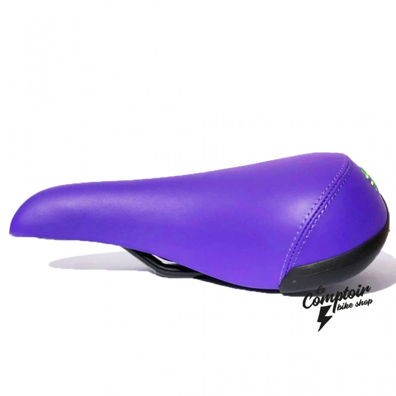 La Selle #BikeLife Violette brodée blanc a été spécialement développé pour le Wheelie Bike: accroche par rails standard compatible avec toutes les tiges de selle classique. Le top du rapport qualité prix!